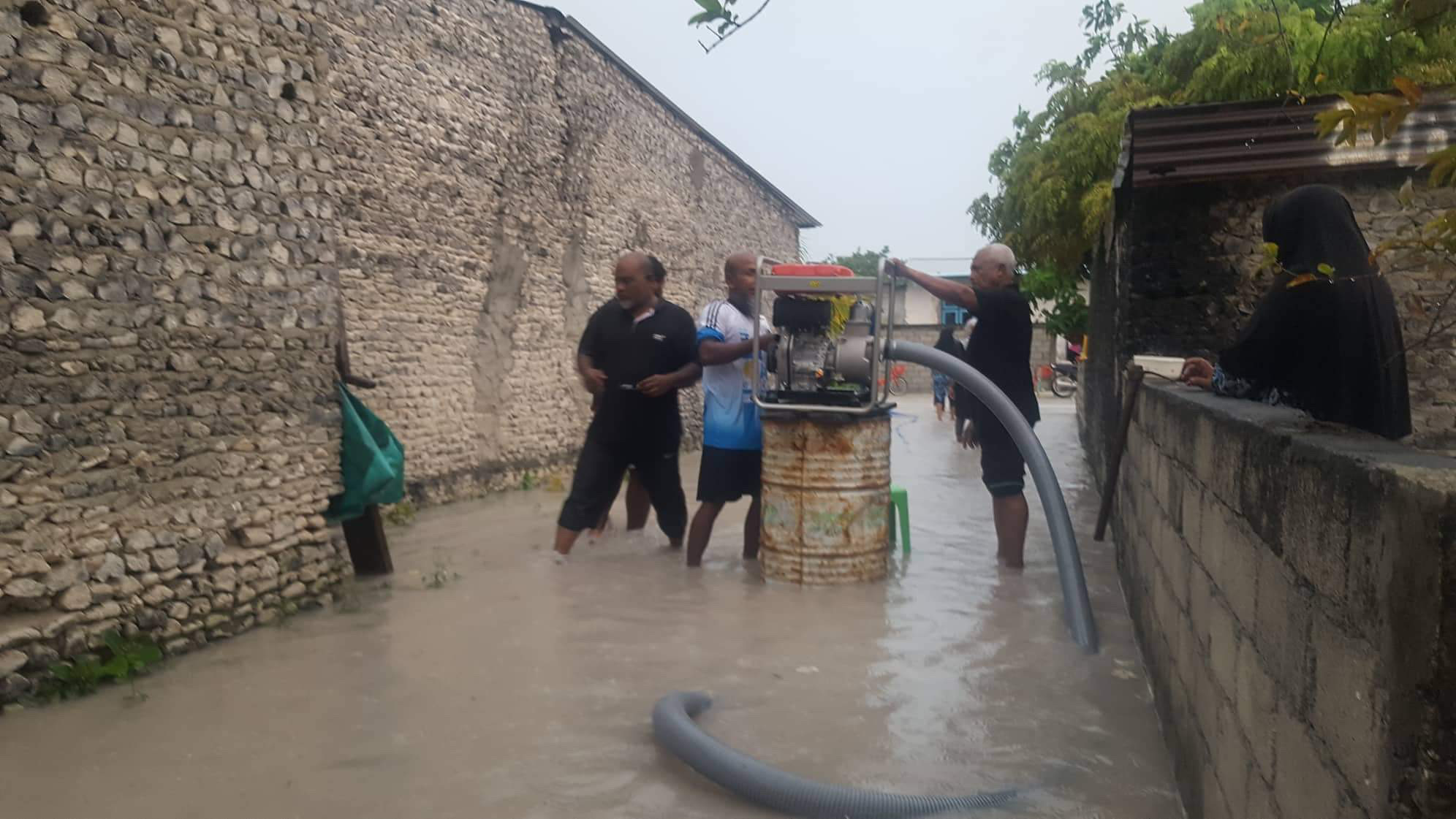 ބ. ގޮއިދޫ ކައުންސިލާއި ފަޔަރ އެންޑް ރެސްކިއު ޓީމް އަދި ރައްޔިތުން ގުޅިގެން ފެން ހިންދުމުގެ މަސައްކަތް ހެނދުނު ފަށާފައި ވާއިރު މީހުން ދިރިއުޅޭ ބައެއް ގޭގެއަށް ވަނީ ފެން ވަދެފައެވެ.