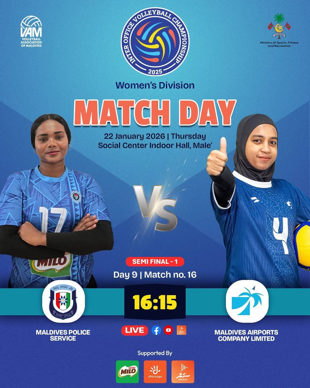 މި މުބާރާތުގެ ސެމީ ފައިނަލް 2 މެޗު މިއަދު ކުޅުމަށް ހަމަޖެހިފައިވާއިރު، ސެމީ ފައިނަލްގެ ފުރަތަމަ މެޗްގައި މިއަދު ހަވީރު ވާދަކުރާނީ މި މުބާރާތުގެ އެޓީމު ކުޅުނު ހުރިހާ މެޗެއް ފަސޭހަކަމާއެކު ކާމިޔާބުކުރީ މޯލްޑިވްސް ޕޮލިސް ސާވިސް އާއި މޯލްޑިވްސް އެއާރޕޯޓްސް ކޮމްޕެނީ ލިމިޓެޑް (އެމް.އޭ.ސީ.އެލް) އެވެ. މި މެޗް ފެށުމަށް ހަމަޖެހިފައިވަނީ 16:15 ގައެވެ.
