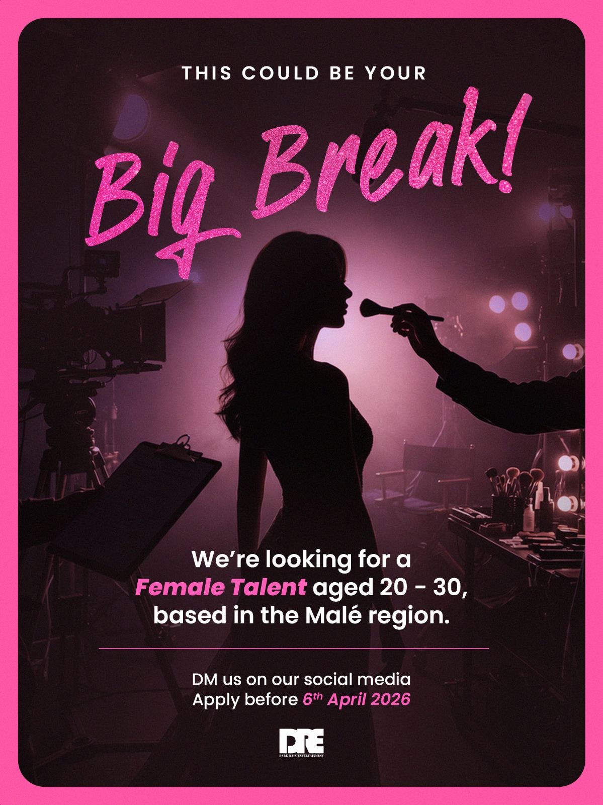 ތިޔައީ ފިލްމީ ދުނިޔެއަށް ނިކުމެ، ތިބާގެ ހުނަރު ބޮޑު މަސްރަހަކަށް ގެންދިއުމުގެ ޝައުގުވެރިކަން ހުރި އަންހެނެއް ނަމަ މިއީ އެފަދަ ފަހި ފުރުސަތެކެވެ. ސްކްރީނުން ފެންނަ ތަރިއަކަށް ވުމުގެ ހުވަފެން ދެކެމުން ދާ ނަމަ، ދެން ލަސްކުރާނެ ވަގުތެއް ނެތެވެ.