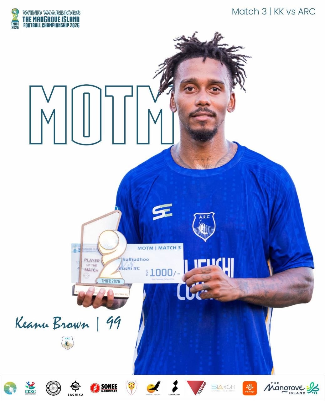 މެޗުގެ މޮޅު ކުޅުންތެރިޔާއަށް ހޮވުނު ކިއާނޫ ބްރައުން / ފޮޓޯ: ދި މެންގްރޫވް އައިލެންޑް ޗެމްޕިއަންޝިޕް އެފްބީ ޕޭޖް